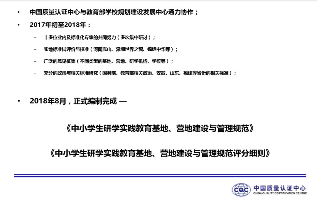 中国质量认证中心、教育部学校发展建设规划发展中心于2018年10月27日在浙江绍兴联合召开《中小学生研学实践教育基地、营地建设与管理规范》发布会。